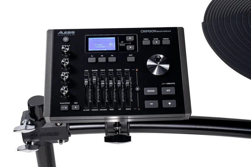 The Alesis Crimson III kit is a nine-piece electronic drum kit featuring the exclusive Alesis mesh drum heads that deliver realistic playability and expression. The updated Crimson III drum module features 80 kits (40 factory/40 user) with 470 sounds – many of which come directly from the world-renowned BFD drum library. Also upgraded is the user interface with 6 mix faders to control levels.