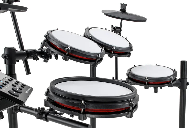 Eight Piece Electronic Drum Kit with Mesh Heads and Bluetooth natural, responsive electronic drum performance