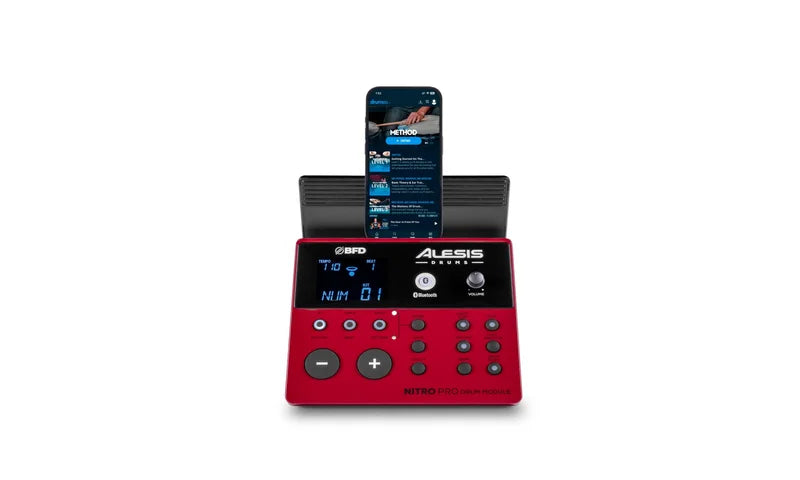 Jam along to performance tracks or favorite recordings thanks to Bluetooth integration, allowing users to stream audio from any Bluetooth enabled smart devices and tablets. Nitro Max even features a sleek device holder designed to accommodate most phones and pads in a landscape orientation, perfect for viewing lessons or tutorial videos while the user practices.