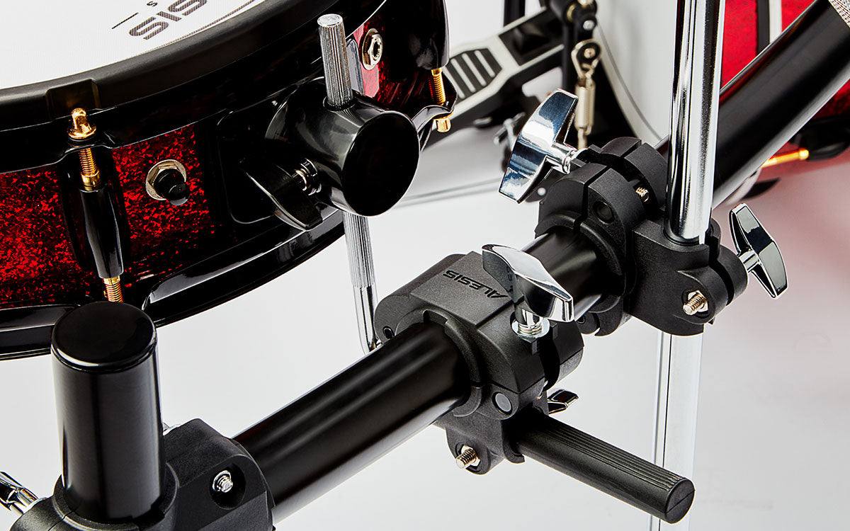 However, there is far more that makes the Strike Pro Special Edition an extraordinary playing experience than just the full-sized kick. To begin with, the Strike Pro Special Edition utilizes all-new latest-generation mesh heads, dual-zone for the snare and all the toms. Their response is faster, more natural and easier-playing than ever before. You will fly over these heads, effortlessly laying down powerful grooves and snapping off crisp fills. These heads won’t fight you; instead, these new Alesis mesh heads are your best ally.