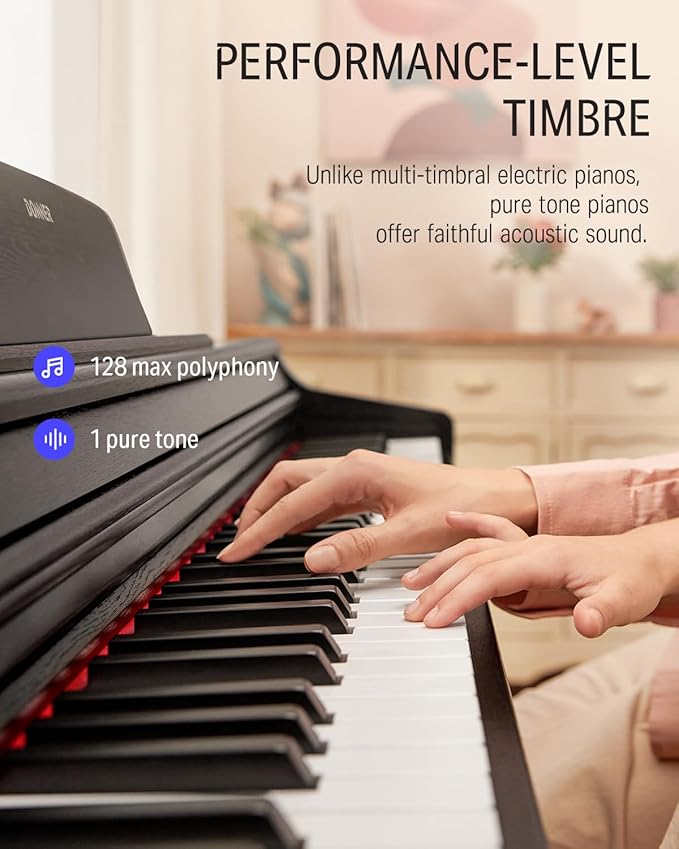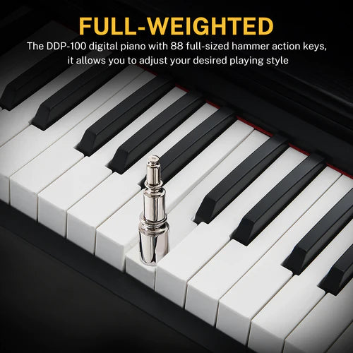 Donner DDP-100 Piano Digital untuk Pemula dengan 88 tuts heavy hammer ukuran penuh, yang benar-benar mengembalikan nuansa asli piano asli, memupuk minat Anda pada piano, membantu Anda melatih postur kinerja yang baik, dan membuat kemajuan dalam waktu tercepat