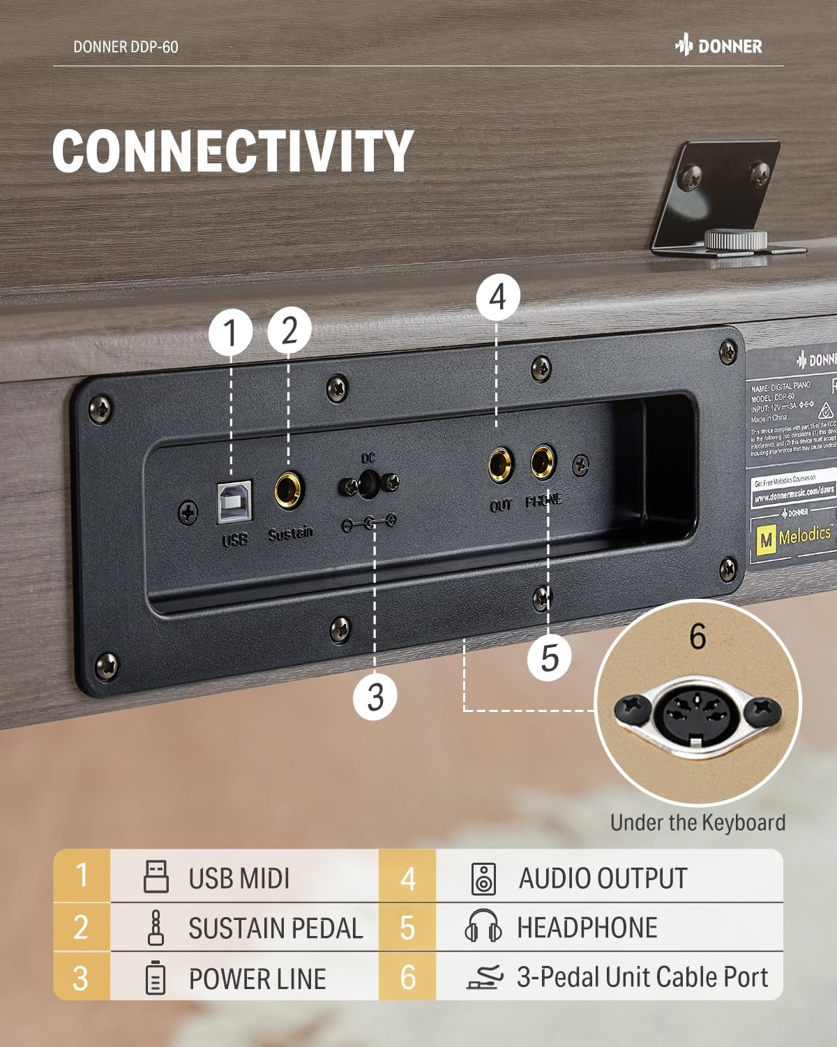 DDP-60 adalah keyboard velocity-sensitive berukuran standar dengan 88 tuts yang sempurna untuk pemain yang masih mengembangkan sentuhan mereka.