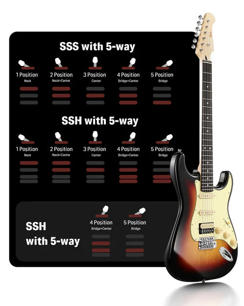 The HSS model includes a PUSH-PULL switching circuit that enables the humbucker pickup to be split into single coils, giving players more tonal options to perform with a wide range of music.