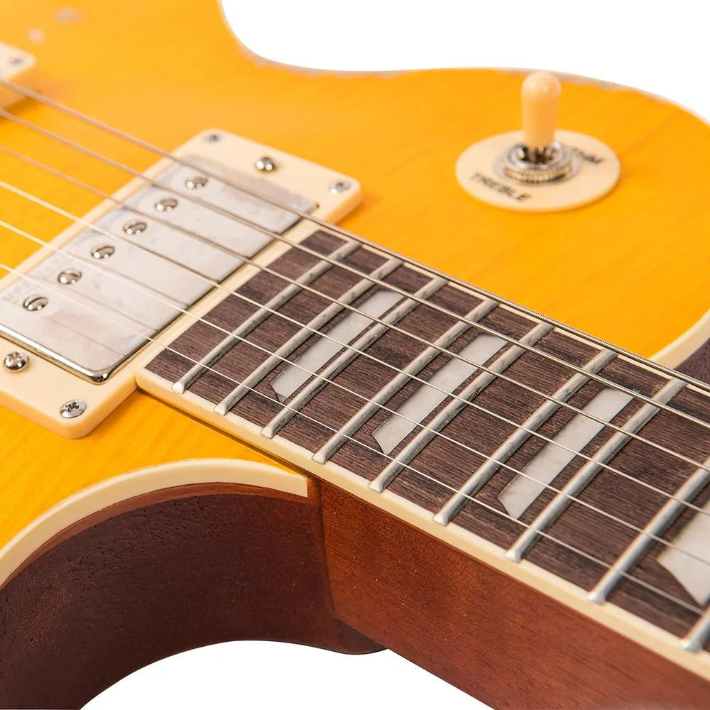 The 'Lemon Drop' is a one-of-a-kind classic. A reverse fitted neck pickup combines with out-of-phase centre position wiring to produce a throaty, singing and instantly-identifiable lead tone, ideal for slow blues. Mismatched tone and volume knobs and an iconised finish ensure the Lemon Drop keeps the mojo working.