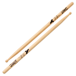 This stick drives Taylor Hawkins and the Foo Fighters, and packs some unexpected punch. It draws parallels to a 5B with a larger shaft that is powered up front. The shorter taper adds great throw and weight to the stick's 5B size. A large round tip delivers a bold rock sound, and the thicker diameter helps the stick project easily. The overall design makes these an excellent stick for rock but also well-balanced to play any style of music.