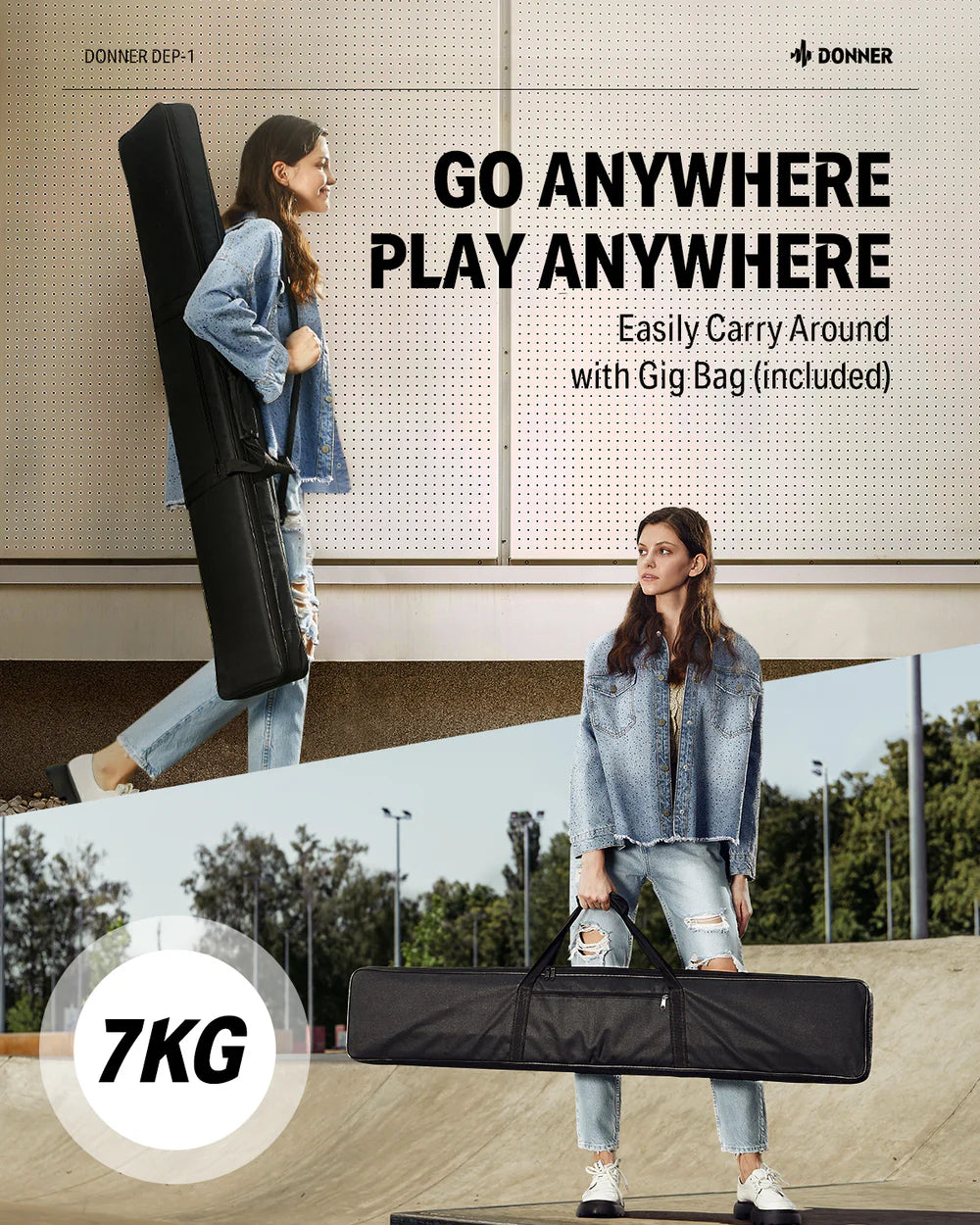 • Enhanced Portability: Weighing only 7 kg, the DEP-1 features sleek and smooth lines. The piano body is light but solid, suitable for indoor practice, outdoor performance, and convenient storage with a carrying case.