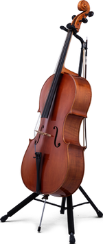 The HERCULES Cello Stand DS580B features the Auto Grip System (AGS) yoke that safely holds the peg box and is equipped with Specially Formulated Foam (SFF) padding covered legs to protect the instrument at all contact points.