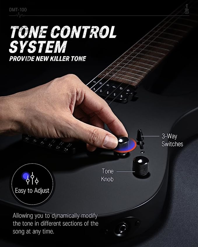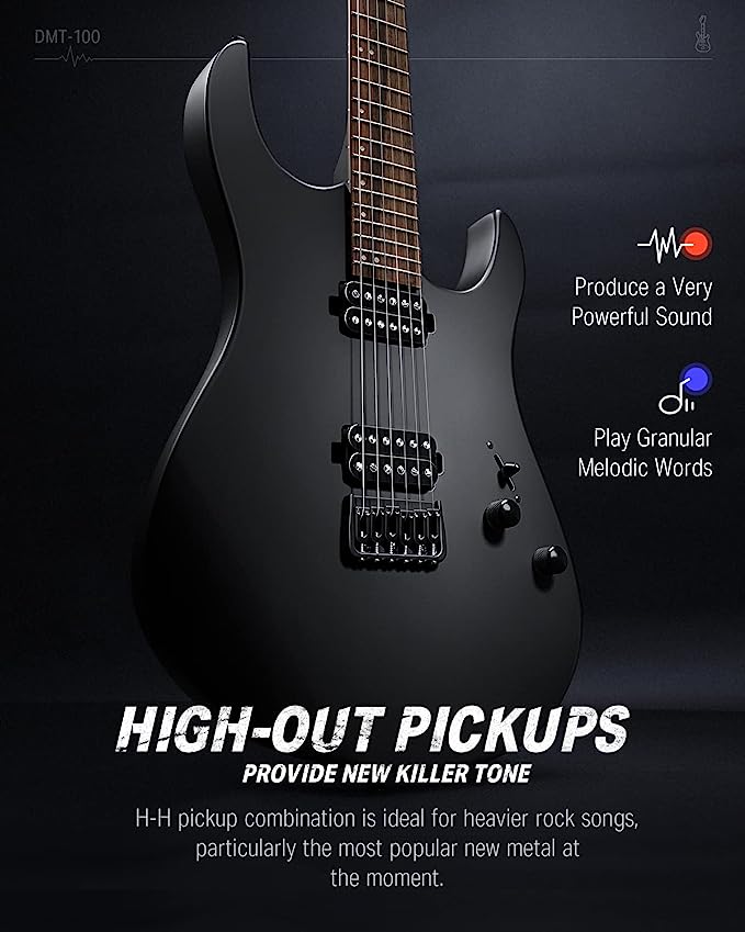 - [Pickup H-H High-out]Kombinasi pickup H-H DMT-100 yang disesuaikan sangat ideal untuk lagu-lagu rock yang lebih berat, khususnya lagu-lagu metal baru yang paling populer saat ini. Itu dapat menghasilkan suara yang sangat dahsyat, dan juga memainkan melodi granular. Nada ofensif memungkinkan Anda menghasilkan raungan paling kuat dengan gitar Anda di atas panggung.