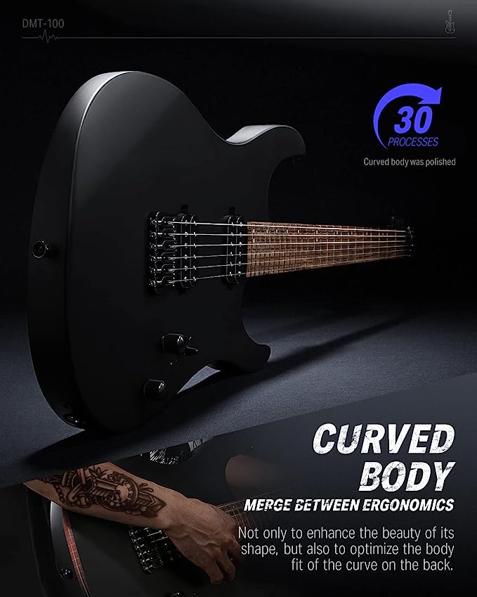 - [Sederhana Tapi Ganas] Hitam putih klasik, menonjolkan estetika sederhana. Metode pelapisan cat bodi gitar sangat tahan aus dan tahan gores. Tidak perlu khawatir akan tergores, meninggalkan bekas, dan perawatan. Desain sudut sudut meluas ke seluruh bodi gitar. Apakah Anda seorang pemain baru atau berpengalaman, DMT-100 akan menjadikan Anda paling agresif di atas panggung.