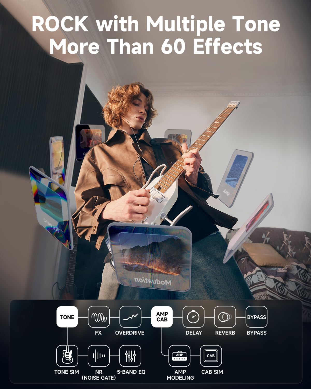 Dengan desain headless yang portabel dan tuner internal yang ditingkatkan, HUSH X PRO hanya berbobot 2.49 kgs dan berukuran setengah dari gitar listrik tradisional. Dengan daya tahan baterai hingga 5-jam dan port pengisian daya cepat USB-C, gitar ini sangat cocok untuk dibawa bepergian, tampil di panggung, dan berlatih.
