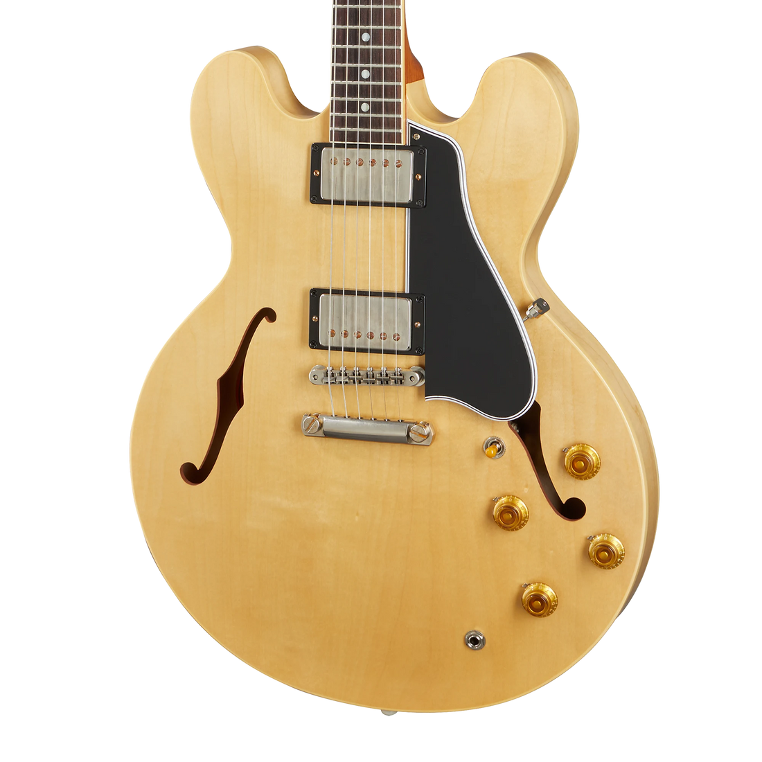 The Historic Reissue ES-335 is back and better than ever thanks to a year of studying, scanning, and listening to original examples. The expert craftspeople at Gibson Custom Shop have rendered every contour, profile, inlay and color of the priceless vintage models in magnificent detail. The result is a playing and ownership experience that will keep you coming back for more. The 1959 Reissue models feature rounded cutaways, Medium C-shape neck profiles scanned from originals, dot inlays and vintage-replica parts.