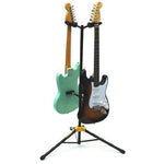 The Duo Guitar Stand safely supports 2 guitars or basses. Features innovative Hercules Auto Grab System (AGS) yokes: the arms turn in and up with the weight of your guitars to hold them securely and simply open up when you lift them off. All contact points with the instruments feature Specially Formulated Foam (SFF) rubber to protect your finish. Also features the Hand Grip Height Adjuster, which makes adjustments a breeze with a locking pin to secure the stand in place. Folding backrests flip down to support your guitars and back up for storage and transport.