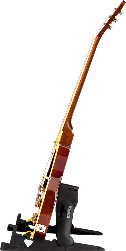 The HERCULES EZPack Guitar Stand GS200B features a patented design that fits both acoustic and electric instruments, hard rubber contacts that protect your instrument, and GS200B folds compact enough to fit in backpacks, instrument cases or gig bags.