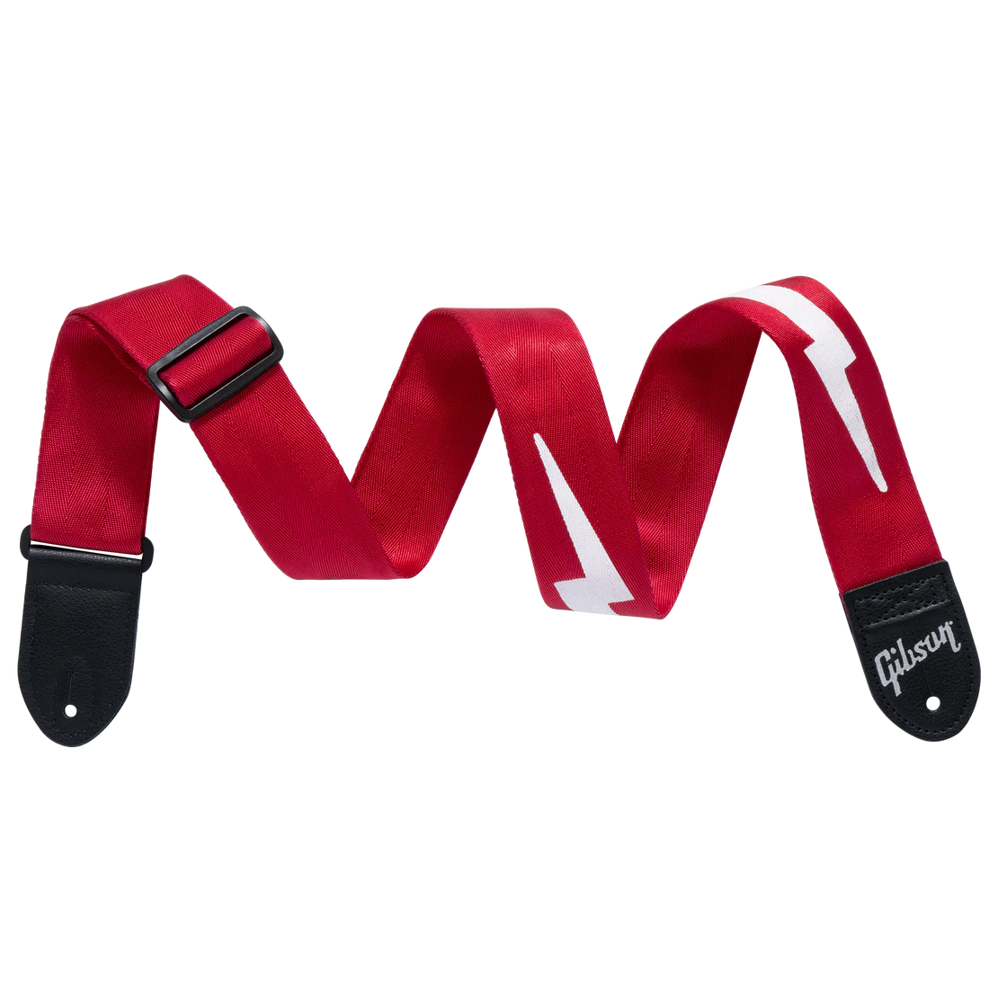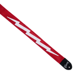Lighting Bolt Guitar Strap is the perfect accompaniment to any Gibson guitar. Made of sturdy and durable nylon with leather end pieces, it has a lightning Bolton black background and the Gibson logo on the end pieces.