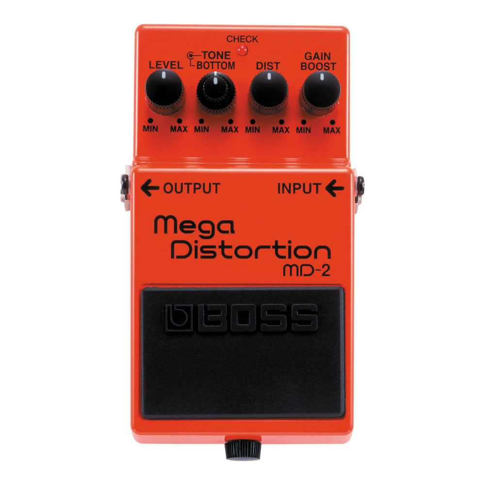 MD-2 Mega distortion memberikan karakter suara distorsi yang berat masa kini yang sering di dengar di new school metal sekarang dan menambahkannya menjadi extreme. Rahasianya adalah sirkuit dual stage distortion dengan tambahan gain boost di tambah kontrol Bottom dan tone.untuk karakter suara distorsi dengan low end yang lebar.